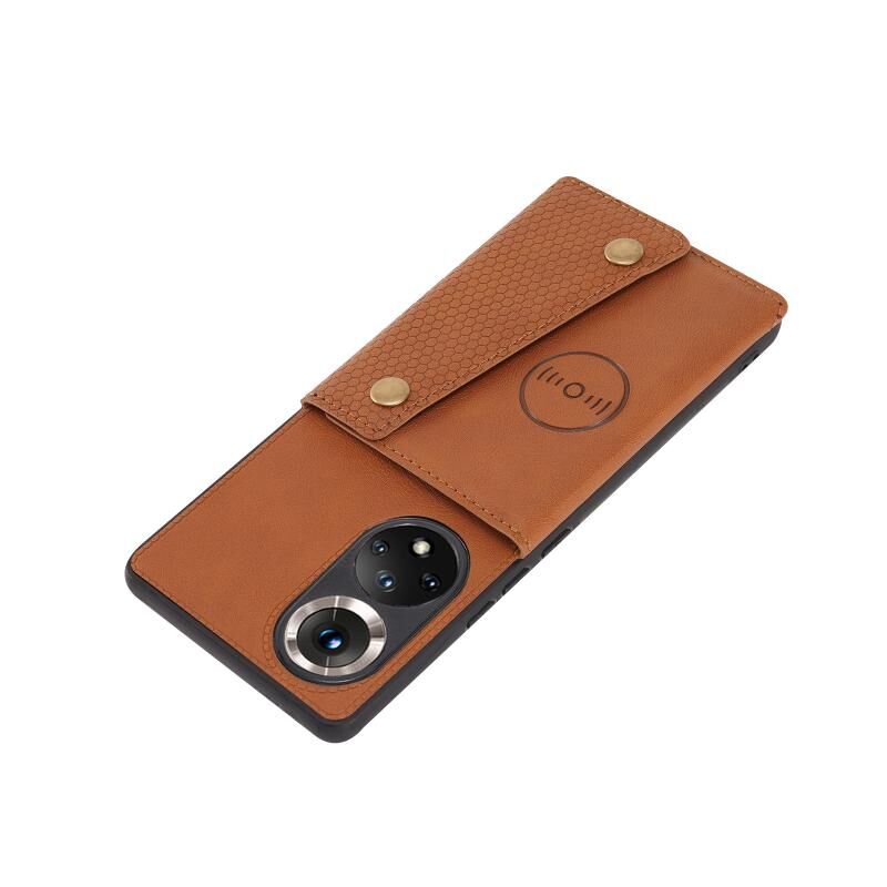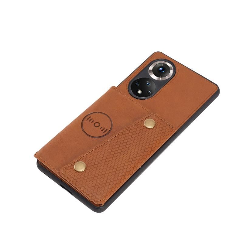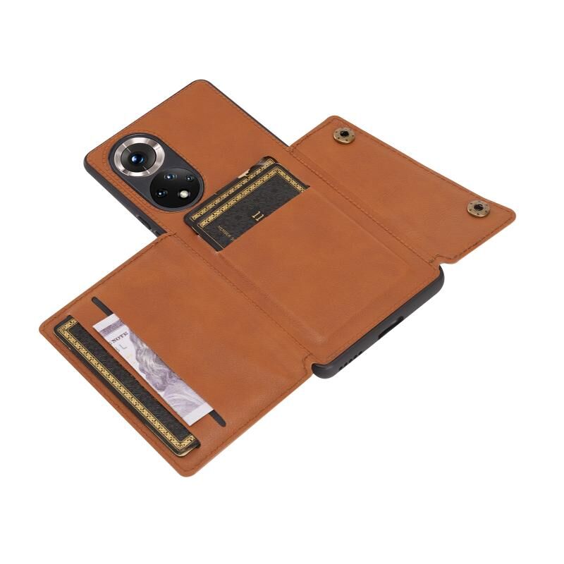 Για Honor 50 Pro Διπλή πόρπη PU + TPU Shockproof μαγνητική θήκη με υποδοχές καρτών & κάτοχος (Καφέ)