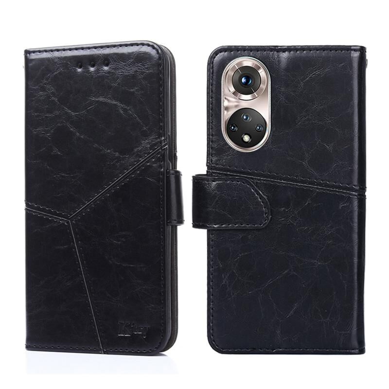 Για Honor 50 Pro γεωμετρική ραφή οριζόντια Flip υπόθεση τηλεφώνου δέρμα (μαύρο)