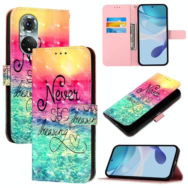Θήκη τηλεφώνου από δέρμα με οριζόντιο άνοιγμα και τρισδιάστατη ζωγραφική για Honor 50 Pro / Huawei Nova 9 Pro (Κυνηγώντας Όνειρα)