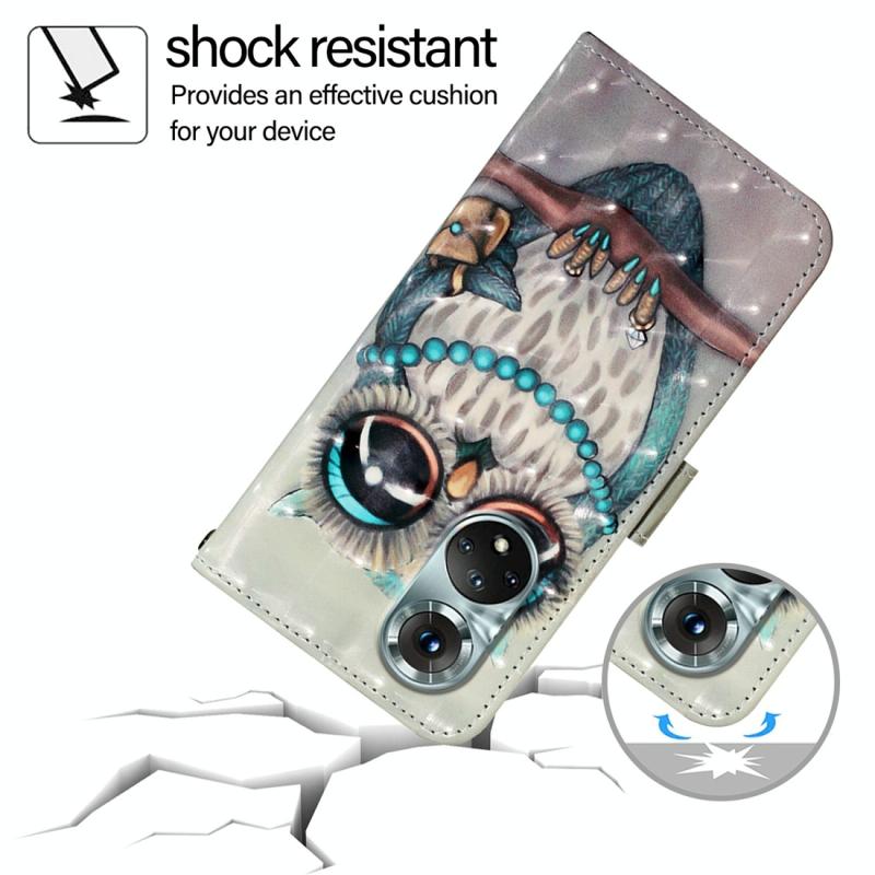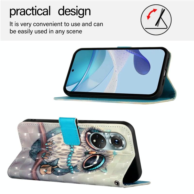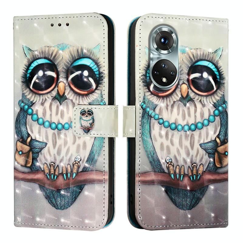For Honor 50 Pro / Huawei Nova 9 Pro 3D Painting Horizontal Flip Leather Phone Case(Grey Owl)