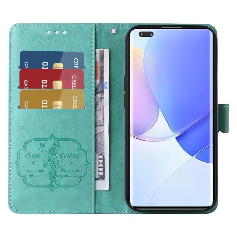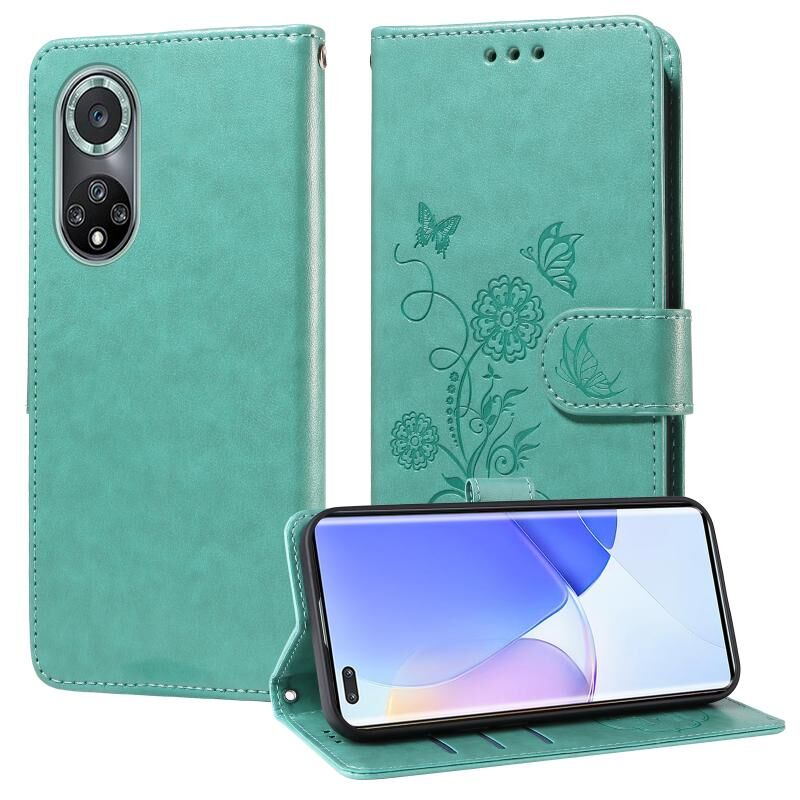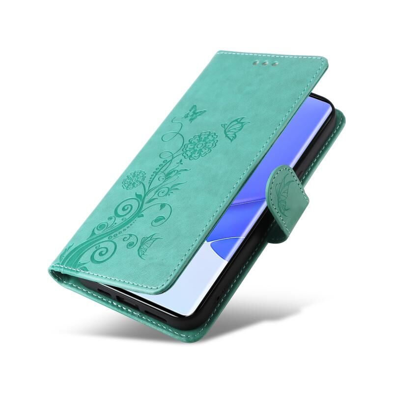Θήκη τηλεφώνου από δέρμα με ανάγλυφα λουλούδια και πεταλούδες για Honor 50 Pro / Huawei nova 9 Pro (Μωβ)