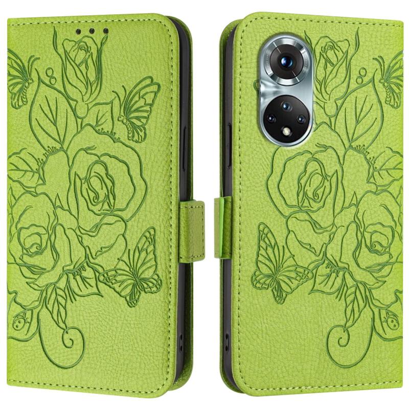 For Honor 50 Pro / Huawei nova 9 Pro Embossed Rose RFID Anti-theft Leather Phone Case(Green)