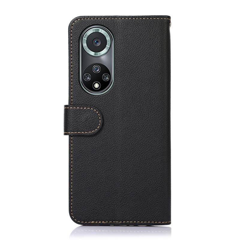 Θήκη κινητού τηλεφώνου KHAZNEH από δέρμα με υφή λύτσι για Honor 50 Pro / Huawei nova 9 Pro με προστασία RFID (Μαύρο)