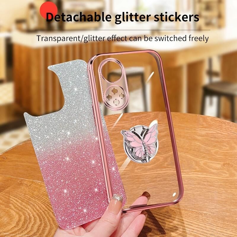 Θήκη κινητού τηλεφώνου TPU με σχέδιο πεταλούδας από πέρλα και ιριδίζοντα χρώματα για Honor 50 Pro (Ροζ)