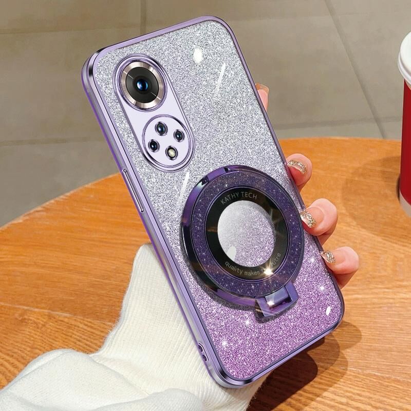 Για Honor 50 Pro επιμεταλλωμένο διαβαθμισμένη Glitter στρογγυλή κάτοχος TPU τηλέφωνο υπόθεση (Μωβ)