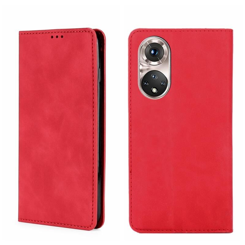 Για Honor 50 Pro Skin Feel Μαγνητική οριζόντια Flip δέρμα τηλέφωνο υπόθεση (κόκκινο)