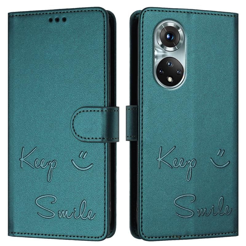 Θήκη τηλεφώνου από δέρμα με ανάγλυφο χαμόγελο και RFID για Honor 50 Pro (Πράσινο παγωνιού)