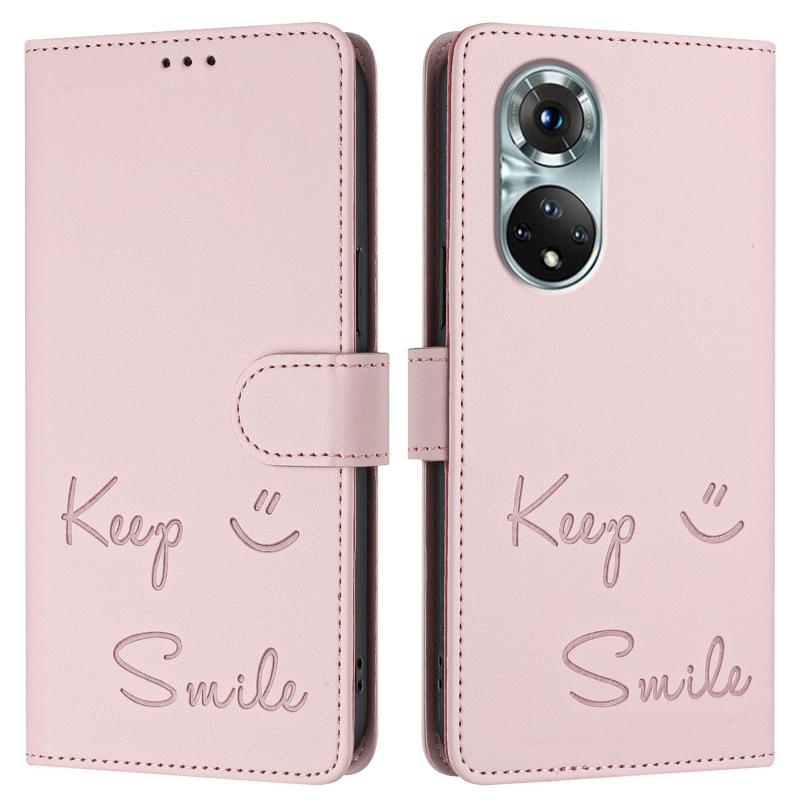 Θήκη τηλεφώνου από δέρμα με ανάγλυφο χαμόγελο και RFID για Honor 50 Pro (ρόζ)