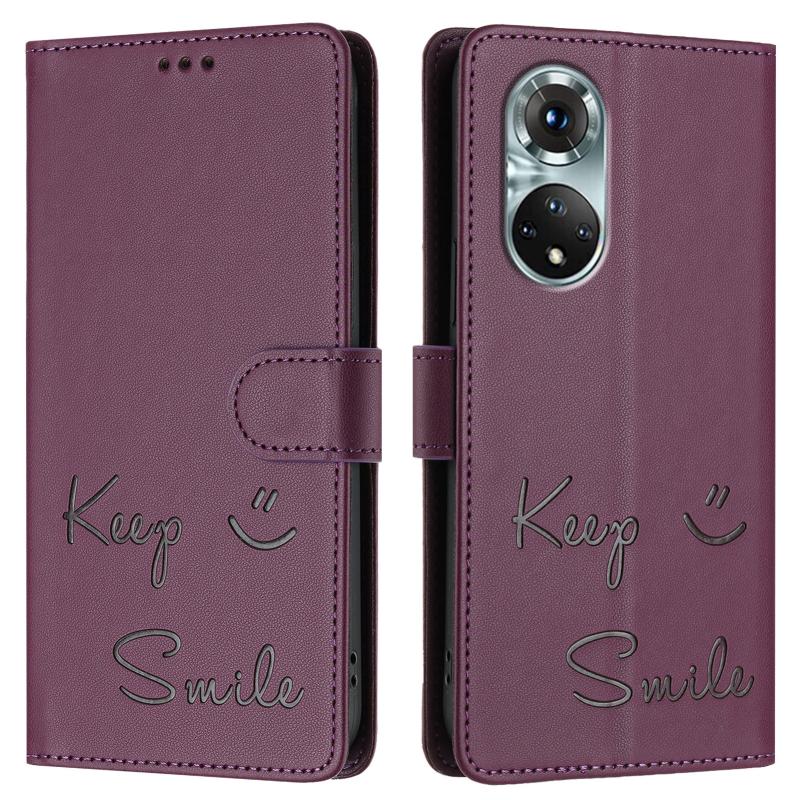 For Honor 50 Pro Smile Embossing RFID Leather Phone Case(Violet)