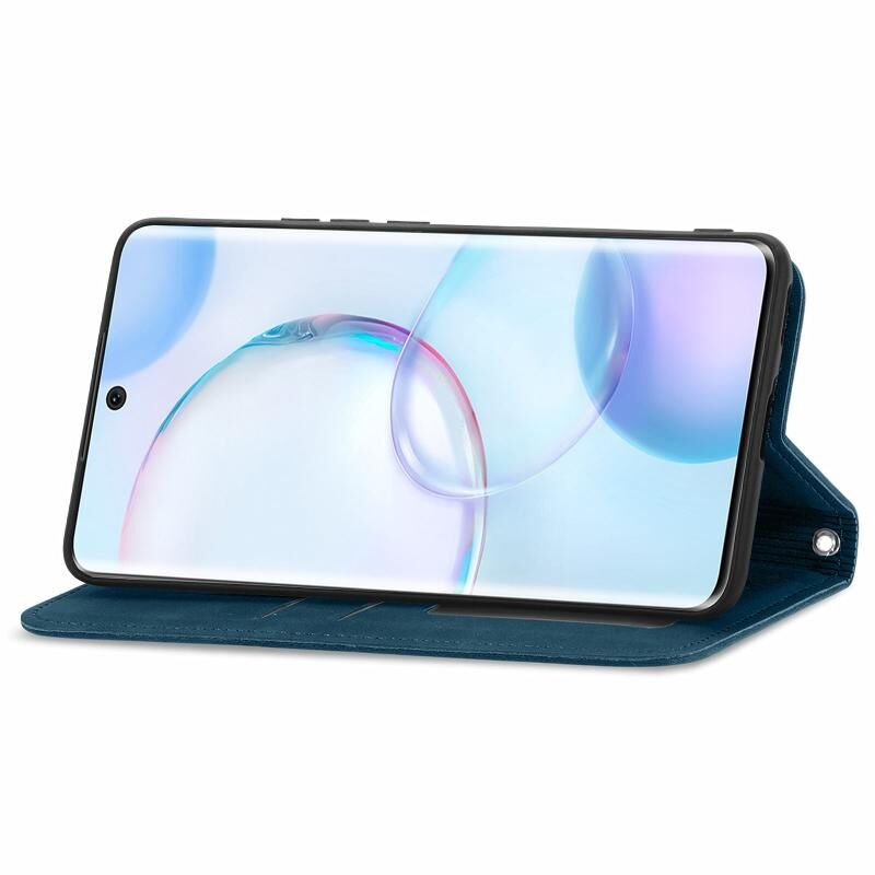 Για Honor 50 Retro Skin Feel Business μαγνητική οριζόντια Flip δερμάτινη θήκη με κάτοχο & υποδοχές καρτών & πορτοφόλι & πλαίσιο φωτογραφιών (μπλε)