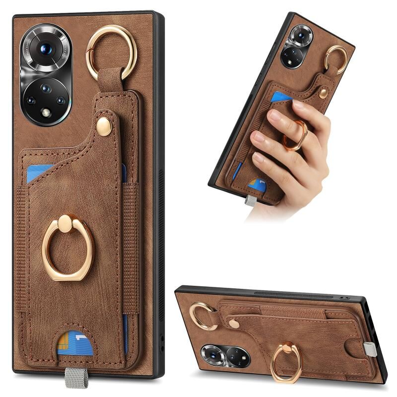 Για την τιμή 50 Ρετρό δέρμα-άισθησης δαχτυλίδι τσάντα κάρτα υπόθεση τηλεφώνου με κρεμάσει βρόχο (καφέ)