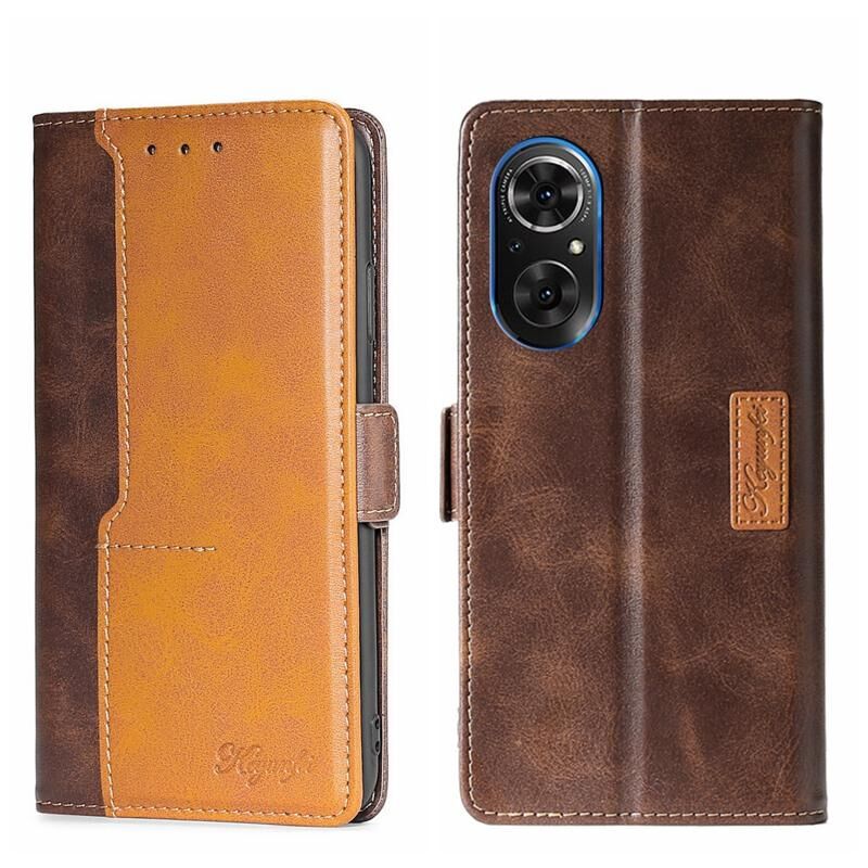 Για Honor 50 SE αντίθεση χρώμα πλευρά πόρπη δερμάτινη θήκη τηλεφώνου υπόθεση (σκούρο καφέ + χρυσό)