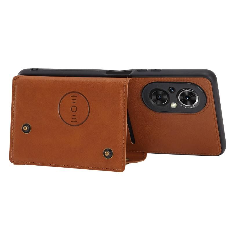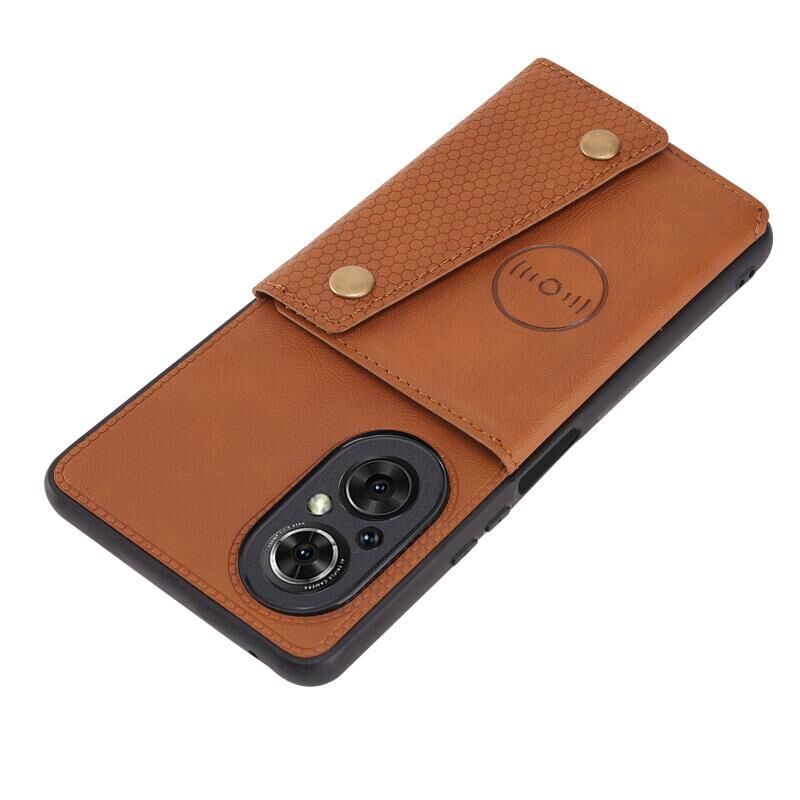 Για Honor 50 SE Διπλή πόρπη PU + TPU Shockproof μαγνητική θήκη με υποδοχές καρτών & κάτοχος (καφέ)