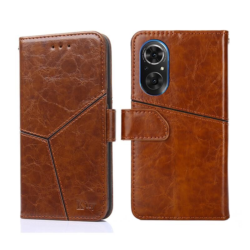 Για Honor 50 SE Γεωμετρική ραφή οριζόντια Flip υπόθεση τηλέφωνο δερμάτινο τηλέφωνο (ανοιχτό καφέ)