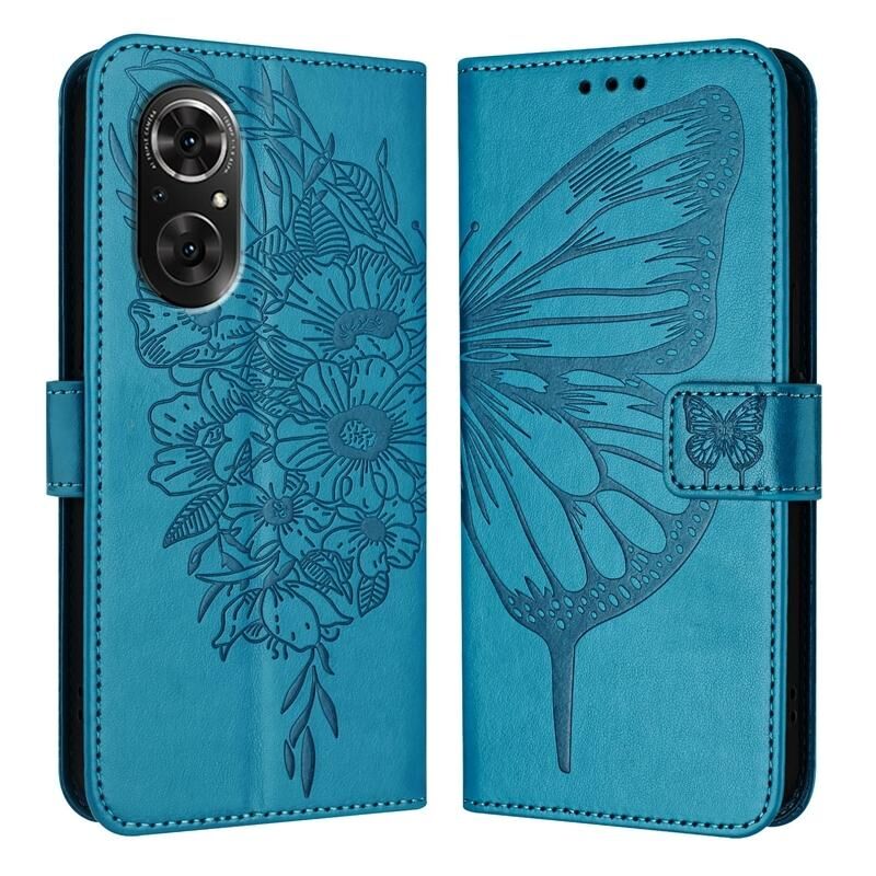 Για Honor 50 SE / Huawei Nova 9 SE ανάγλυφη πεταλούδα δερμάτινη θήκη τηλεφώνου (μπλε)