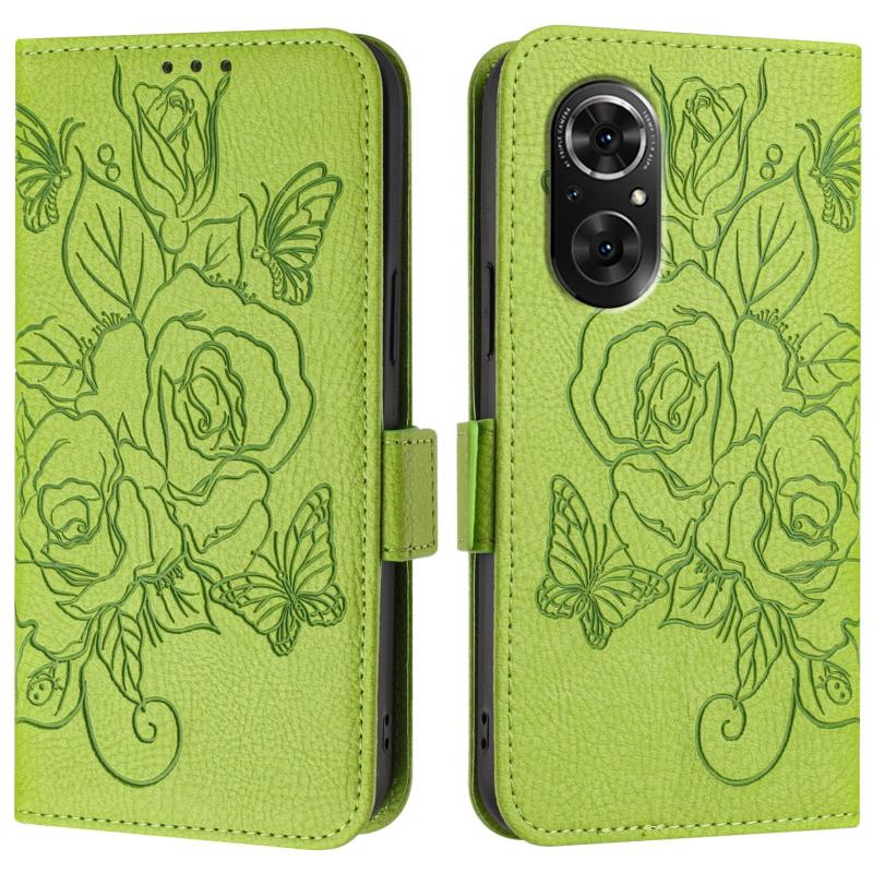 For Honor 50 SE / Huawei nova 9 SE Embossed Rose RFID Anti-theft Leather Phone Case(Green)