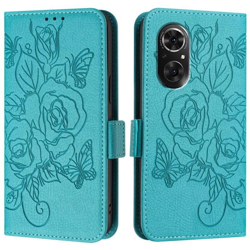 Θήκη τηλεφώνου δερμάτινη με ανάγλυφο σχέδιο τριαντάφυλλου και προστασία RFID κατά της κλοπής για Honor 50 SE / Huawei nova 9 SE (Πράσινο)