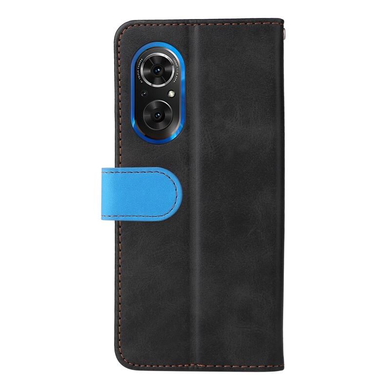 Θήκη δέρματος οριζόντιας αναδίπλωσης με ραφές και διχρωμία για Honor 50 SE/Huawei Nova 9 SE (Ροζ)