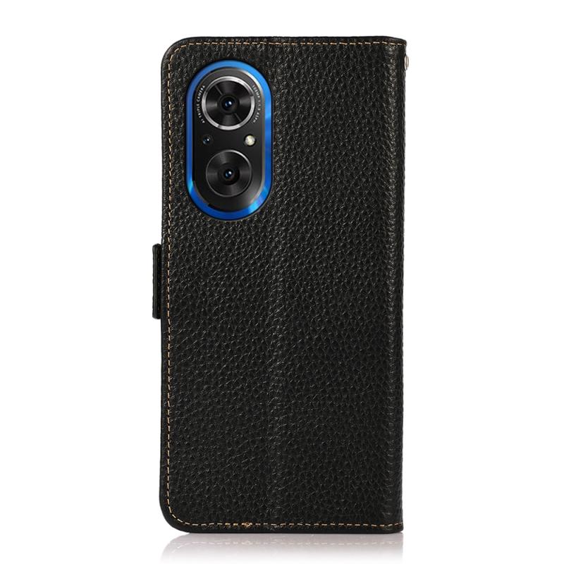 Θήκη κινητού τηλεφώνου Honor 50 SE KHAZNEH με μαγνητικό κλείσιμο, από γνήσιο δέρμα Litchi και προστασία RFID (Μαύρο)