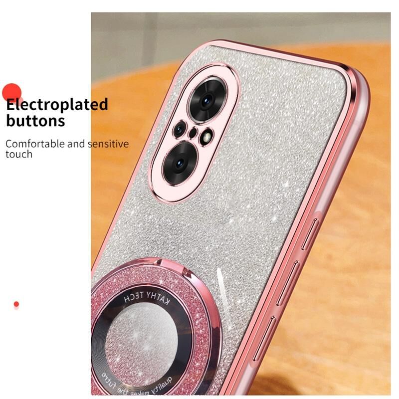 Για Honor 50 SE επιμεταλλωμένο διαβάθμιση Glitter στρογγυλή κάτοχος TPU τηλέφωνο υπόθεση (ρόζ)