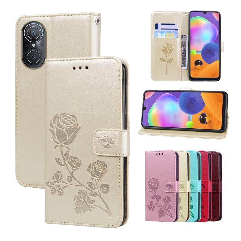 Θήκη τηλεφώνου Honor 50 SE Rose Embossed Flip από Δερματίνη PU (Χρυσό)