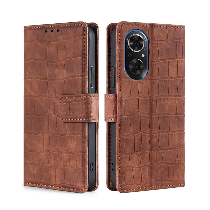 Θήκη κινητού τηλεφώνου Honor 50 se με υφή δέρματος κροκόδειλου, μαγνητικό κούμπωμα, από δερματίνη PU (Καφέ)