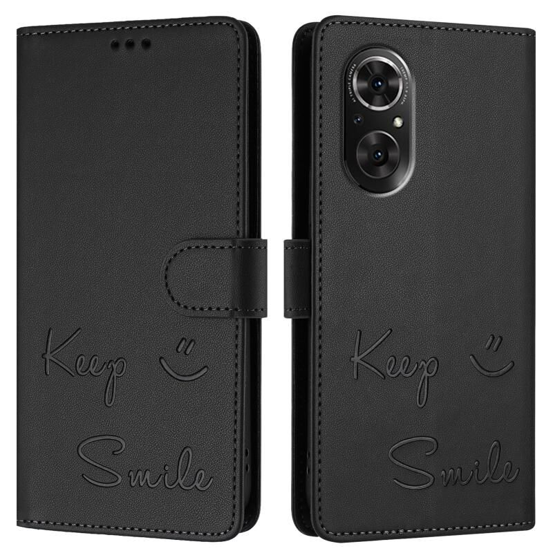 Θήκη τηλεφώνου από δέρμα με ανάγλυφο χαμόγελο και RFID για Honor 50 SE (Μέντας Πράσινο)