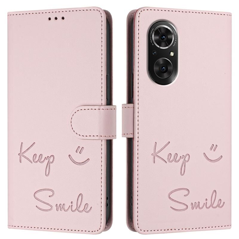 Θήκη τηλεφώνου από δέρμα με ανάγλυφο χαμόγελο και RFID για Honor 50 SE (Μέντας Πράσινο)