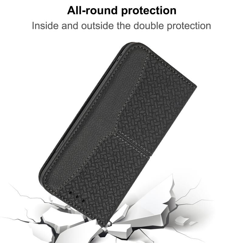 Για Honor 50 SE Υφαντή υφή ραφή μαγνητική οριζόντια Flip PU δέρμα υπόθεση με κάτοχο & υποδοχές για κάρτες & πορτοφόλι & κορδόνι (μαύρο)