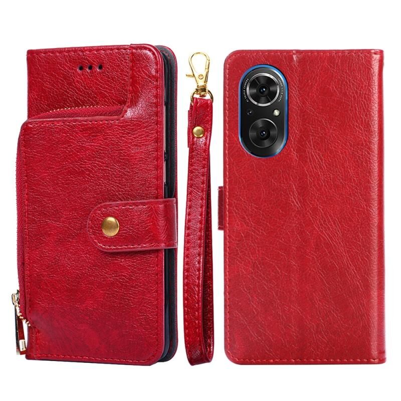 Για Honor 50 SE φερμουάρ τσάντα PU + TPU οριζόντια Flip δέρμα τηλέφωνο υπόθεση (κόκκινο)
