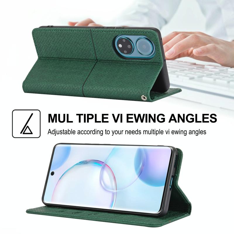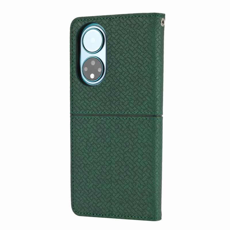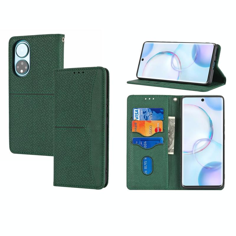 Θήκη για Honor 50 με υφαντή υφή, ραφές, μαγνητικό κλείσιμο, οριζόντια, από δερματίνη PU με βάση στήριξης, θήκες για κάρτες, πορτοφόλι & κορδόνι (πράσινο)