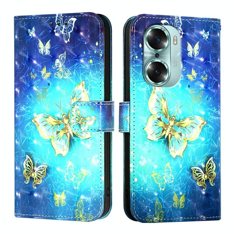 Θήκη τηλεφώνου από δέρμα με τρισδιάστατη ζωγραφική και οριζόντια αναδίπλωση για Honor 60 (Χρυσή Πεταλούδα)