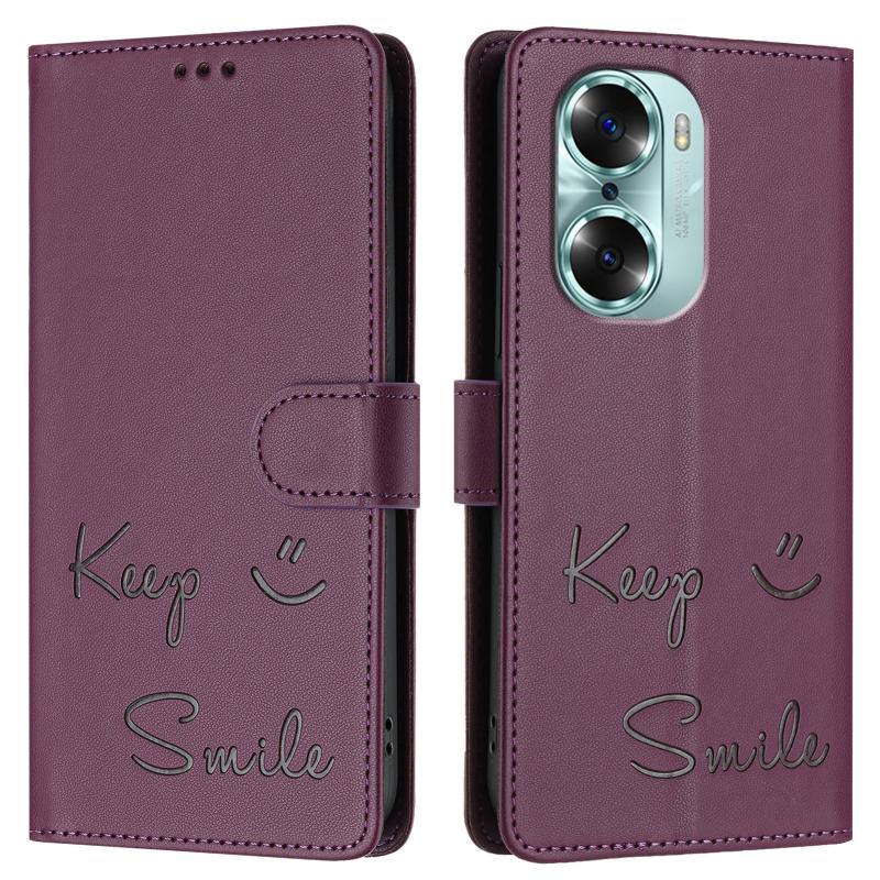 For Honor 60 5G Smile Embossing RFID Leather Phone Case(Violet)