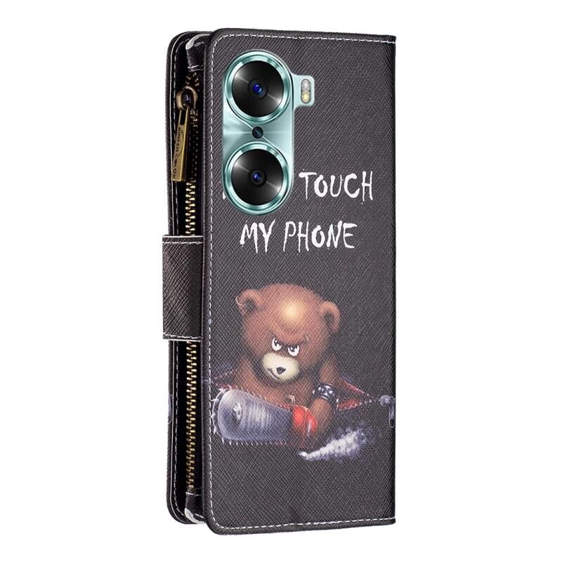 Θήκη τηλεφώνου δερμάτινη, οριζόντια, με φερμουάρ και σχέδιο με χρώματα για Honor 60 (Αρκούδα)