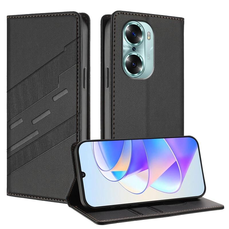 Θήκη τηλεφώνου από δέρμα retro με ανάγλυφο σχέδιο και πολλαπλές λειτουργίες για Honor 60 (Μαύρο)