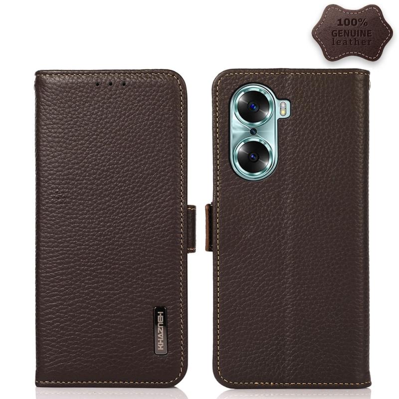 For Honor 60 KHAZNEH Side-Magnetic Litchi Genuine Leather RFID Phone Case(Brown)