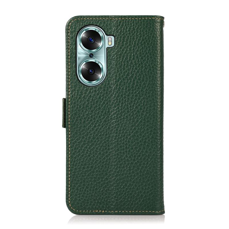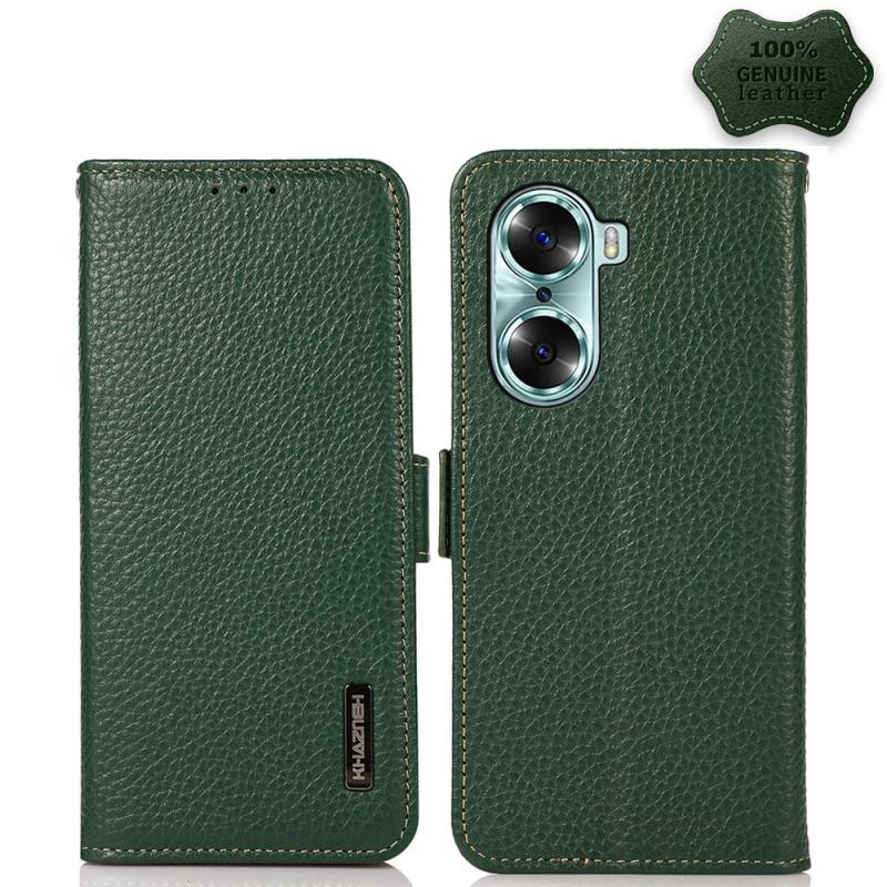 For Honor 60 KHAZNEH Side-Magnetic Litchi Genuine Leather RFID Phone Case(Green)