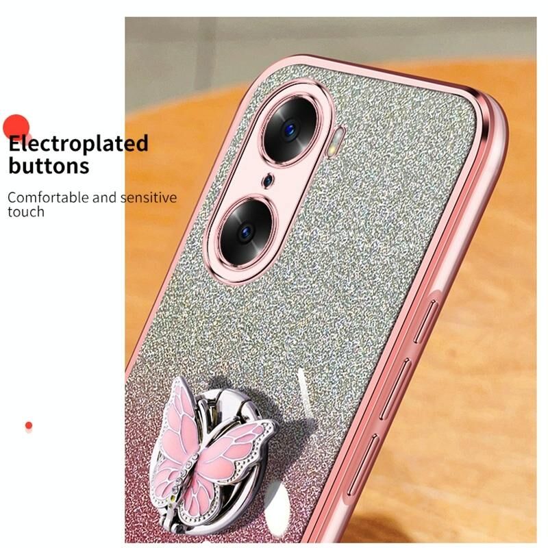 Θήκη κινητού τηλεφώνου TPU για Honor 60 με επιμετάλλωση, διαβαθμισμένη λάμψη, σχέδιο πεταλούδας (Ροζ)