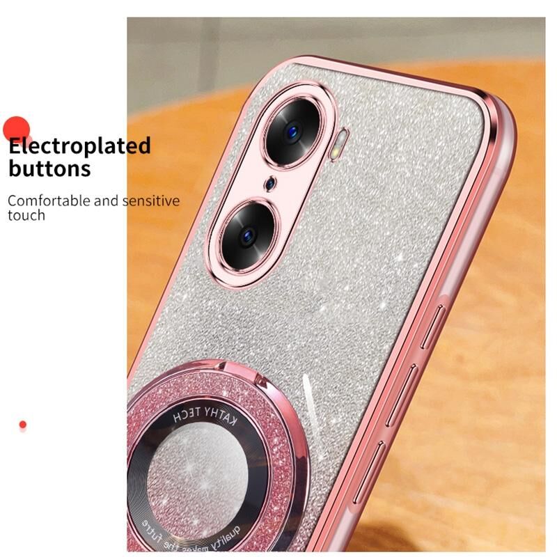 Για Honor 60 επιμεταλλωμένο διαβάθμιση Glitter στρογγυλή κάτοχος TPU τηλέφωνο υπόθεση (ροζ)