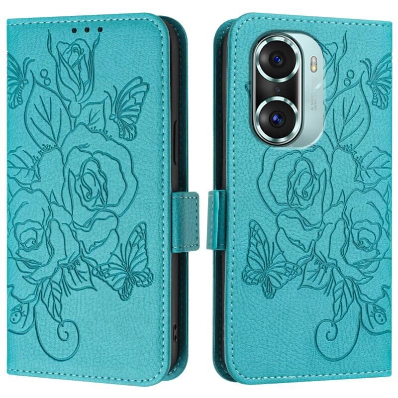 For Honor 60 Pro 5G Embossed Rose RFID Anti-theft Leather Phone Case(Light Blue)