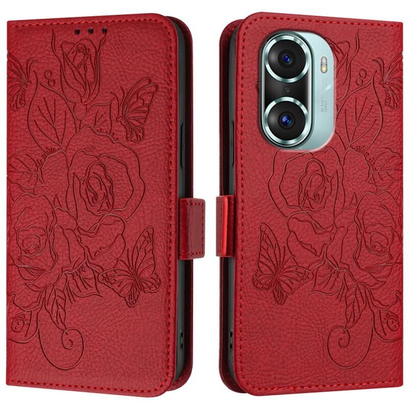 For Honor 60 Pro 5G Embossed Rose RFID Anti-theft Leather Phone Case(Red)