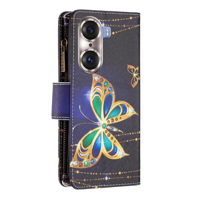 Θήκη τηλεφώνου δερμάτινη οριζόντια με φερμουάρ και σχέδιο πολύχρωμης ζωγραφικής για Honor 60 Pro (Μεγάλη Πεταλούδα)