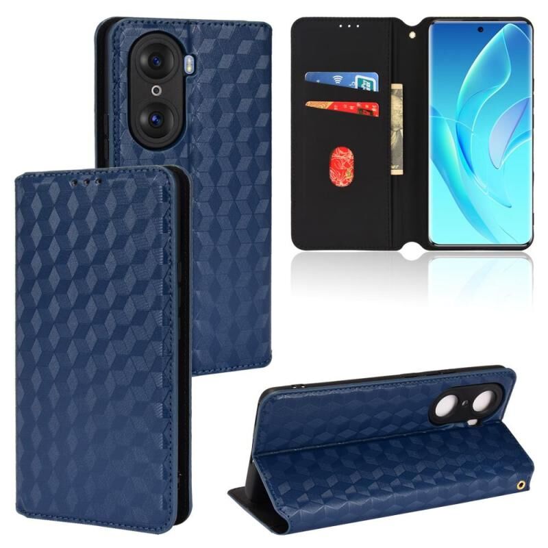Θήκη τηλεφώνου από δέρμα με ανάγλυφη υφή Cubic Grid για Honor 60 Pro (Μπλε)