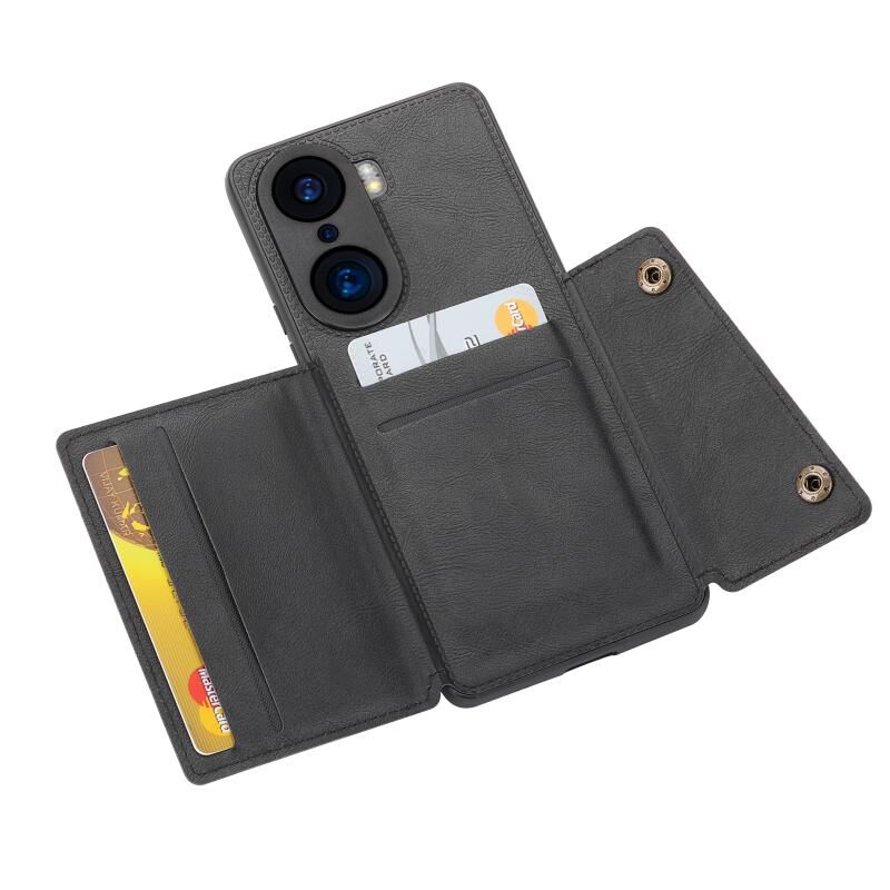 Για Honor 60 Pro Διπλή πόρπη PU + TPU Shockproof μαγνητική θήκη τηλεφώνου (Μαύρο)