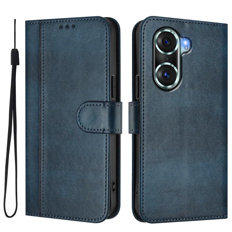 For Honor 60 Pro Line Splicing Buckle Retro Leather Phone Case(Dark Blue)
