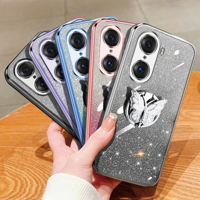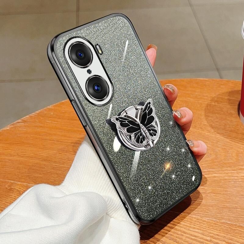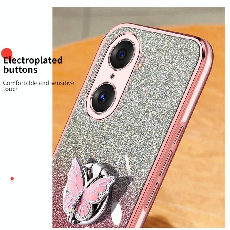 Θήκη κινητού τηλεφώνου TPU με σχέδιο πεταλούδας σε ιριδίζον διαβάθμιση χρώματος για Honor 60 Pro (Ροζ)