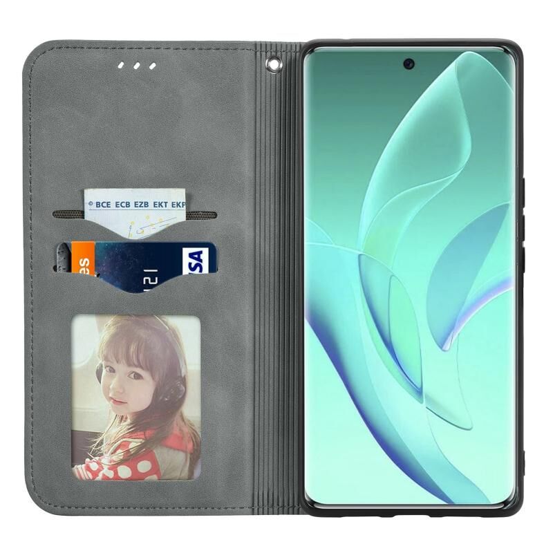 Για Honor 60 Pro Ρετρό δέρμα αίσθηση μαγνητική οριζόντια Flip δέρμα τηλέφωνο υπόθεση (γκρι)