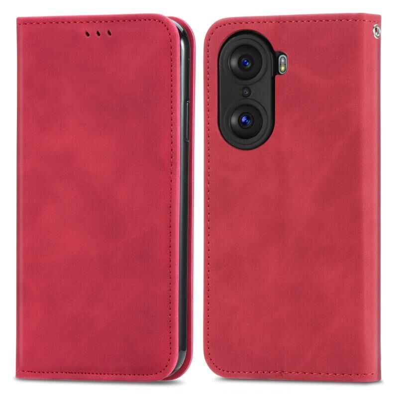Για Honor 60 Pro Ρετρό δέρμα αίσθηση μαγνητική οριζόντια Flip δέρμα τηλέφωνο υπόθεση (κόκκινο)