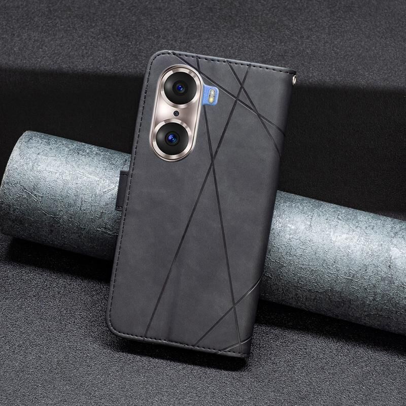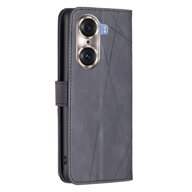 Για Honor 60 Pro Rhombus υφή μαγνητική πόρπη οριζόντια Flip δέρμα τηλέφωνο υπόθεση (Μαύρο)