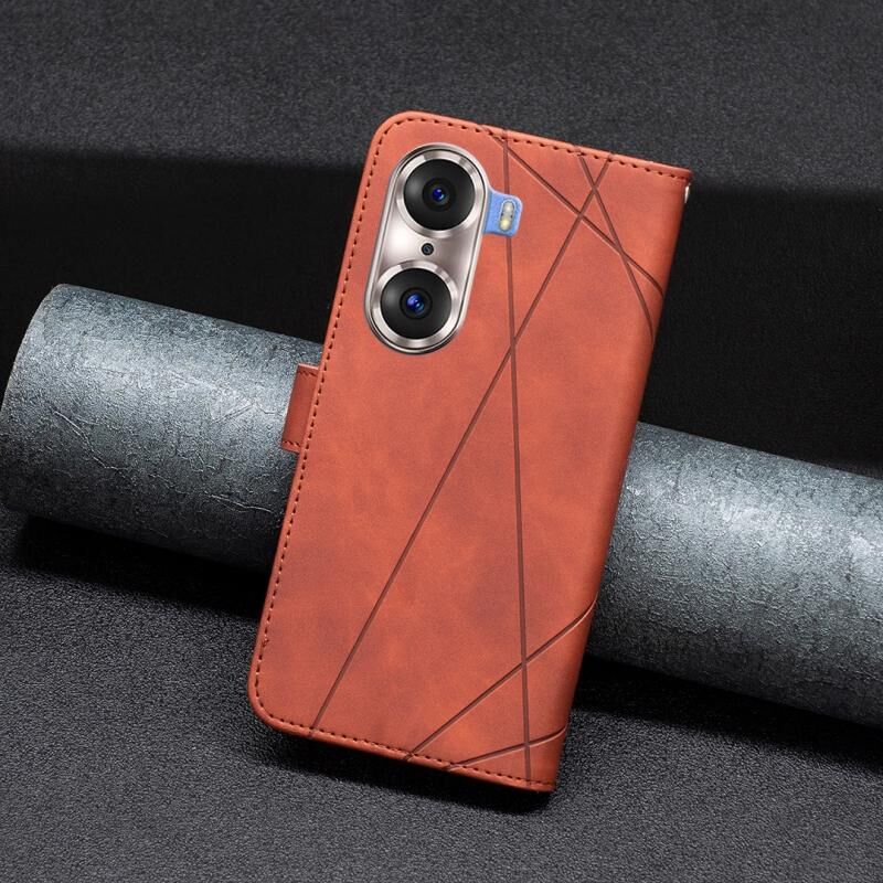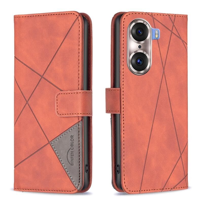Για Honor 60 Pro Rhombus υφή μαγνητική πόρπη οριζόντια Flip δέρμα τηλέφωνο υπόθεση (καφέ)